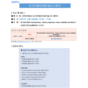 [11월 세미나] RF GaN HEMT manufacturing - market, progresses, issu...